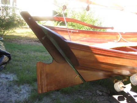 She is planked with 9mm okoume marine plywood, glued lapstrake style. The transom, trim, gunwales are made of sepele mahogany, the seats are white pine. She has a steel centerboard of about 70 lbs so you can fearlessly run aground with no worries of damage! We have sailed her in many regattas and wine and cheese cruises and you can always count on her to get lots compliments.