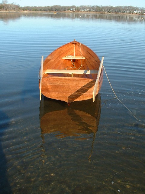 6mm glued lapstrake hull with mahogany transom and trim, white pine seats.